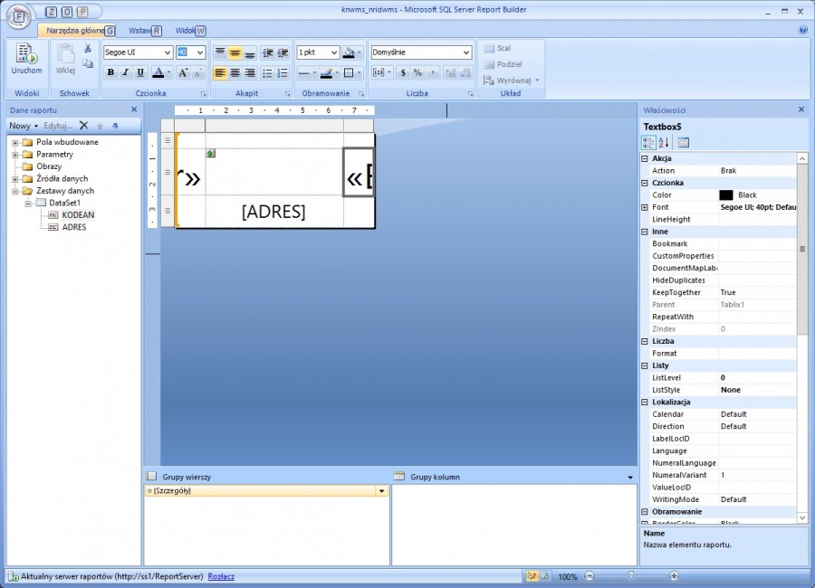Konfiguracja Transakcje SYS eang kody kreskowe raporty SQL reporting services
